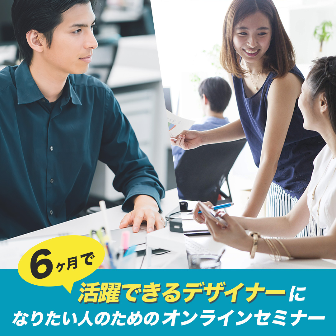 - 「6ヶ月」と「活躍できるデザイナー」を強調したかったため、あしらいを添えたり、まとまりのある印象にしたかったので綺麗な文字組みになるよう意識しました。