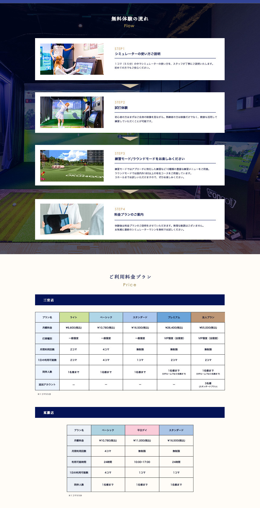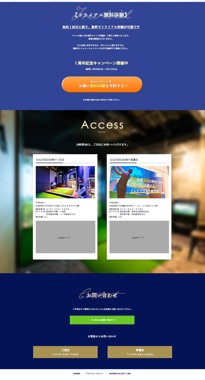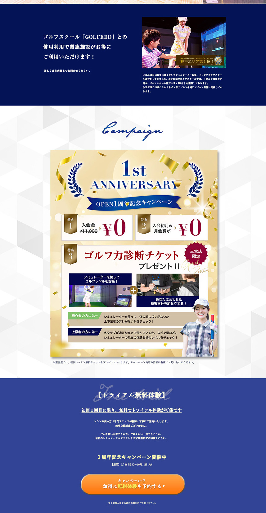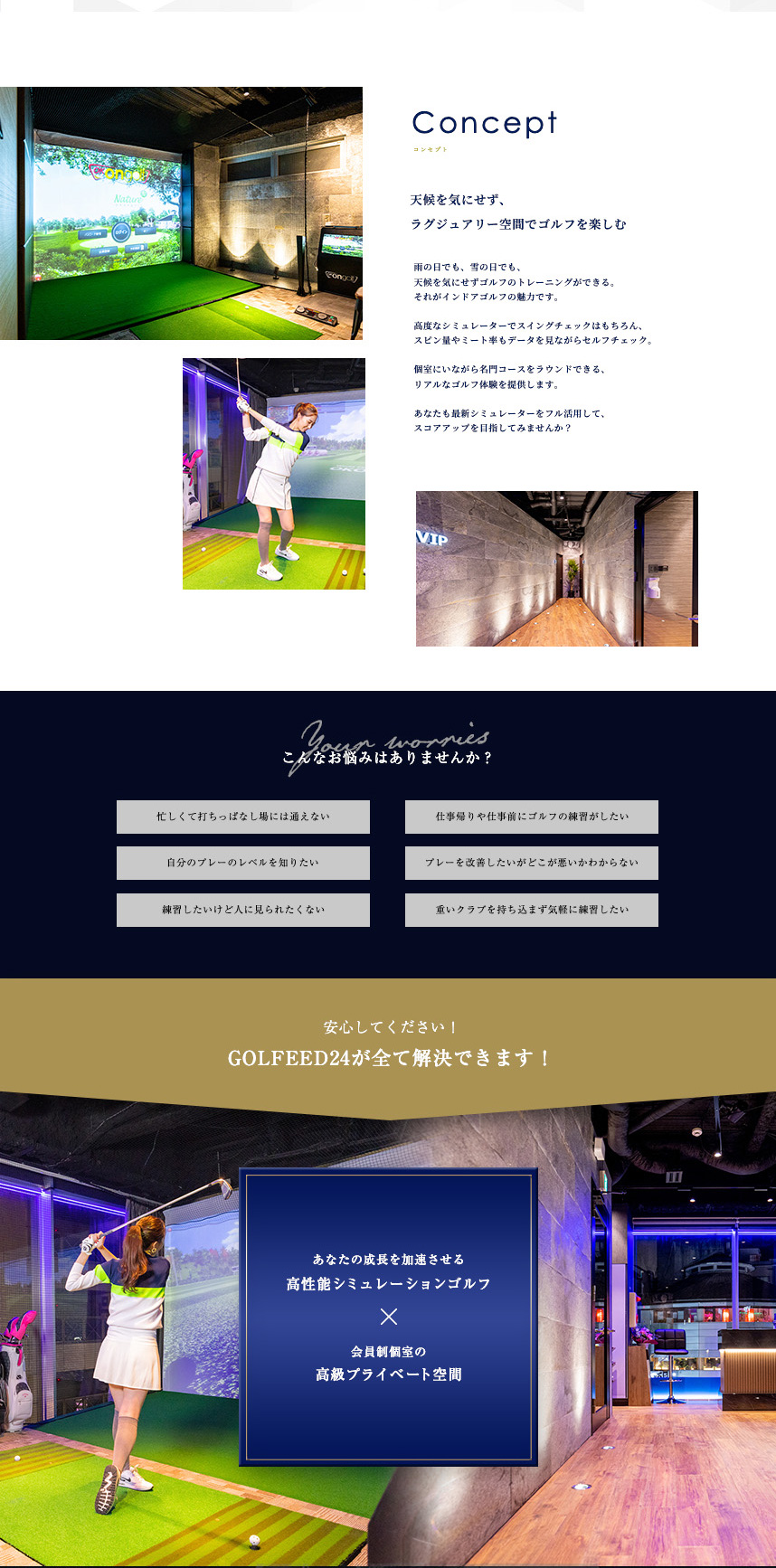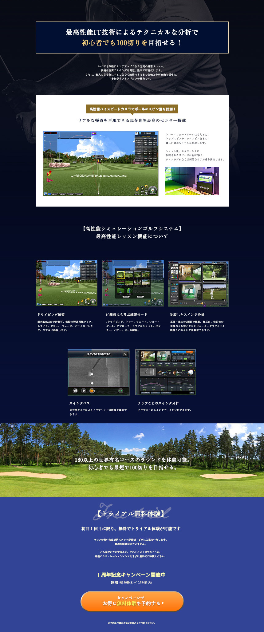 シミュレーションゴルフ施設の集客用LPデザインを制作させていただきました