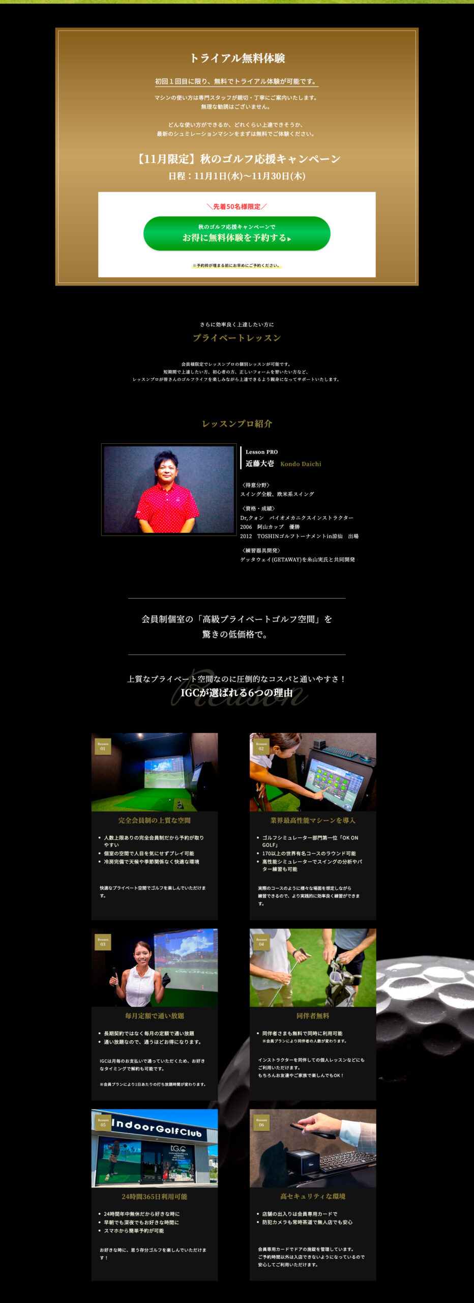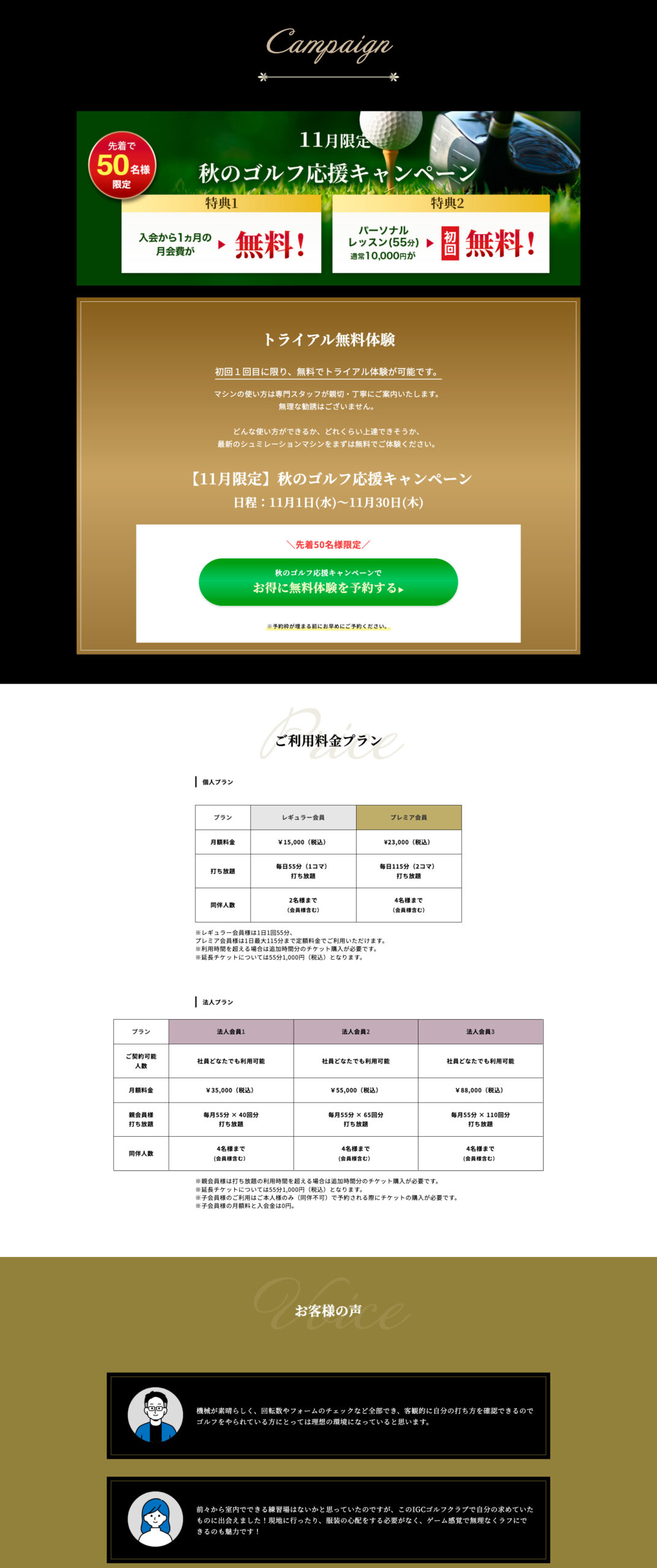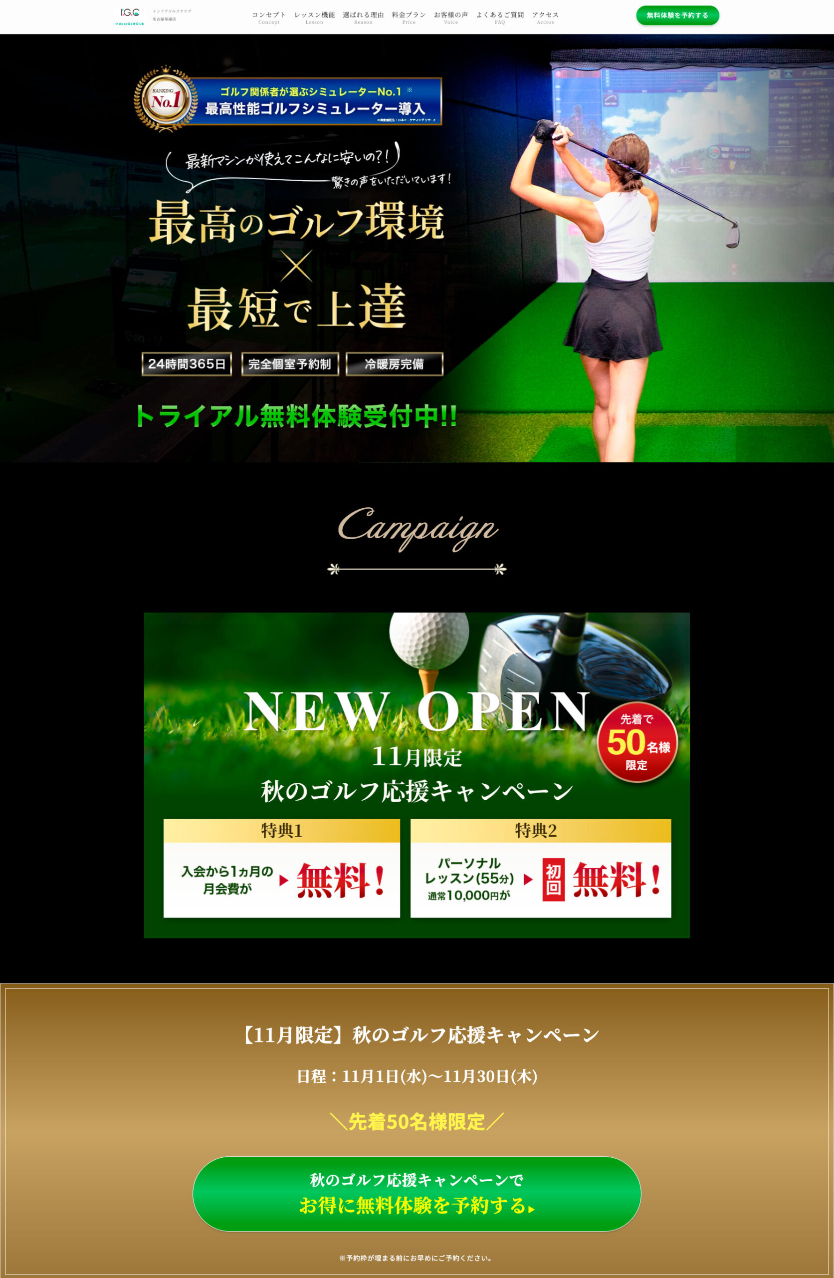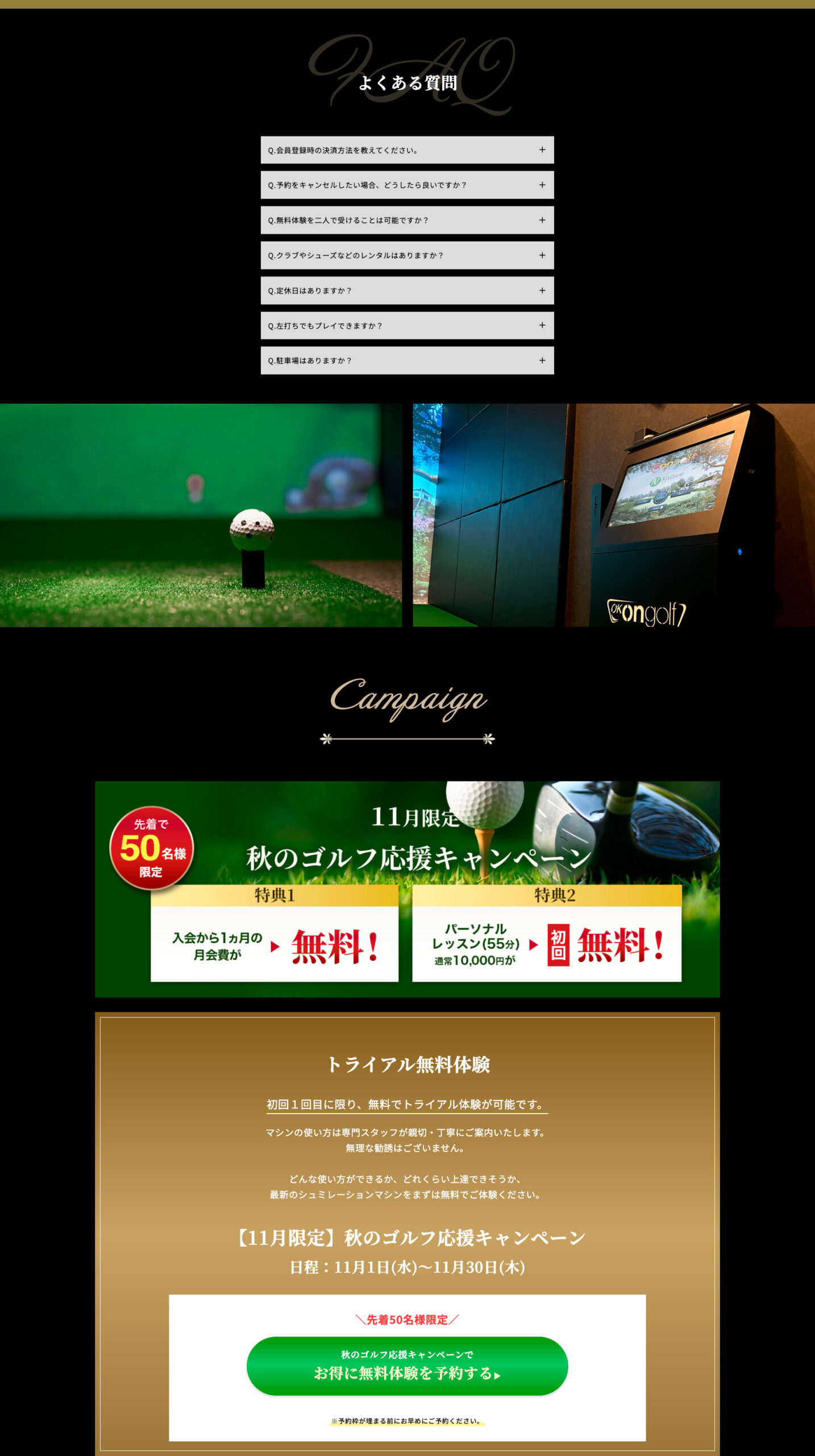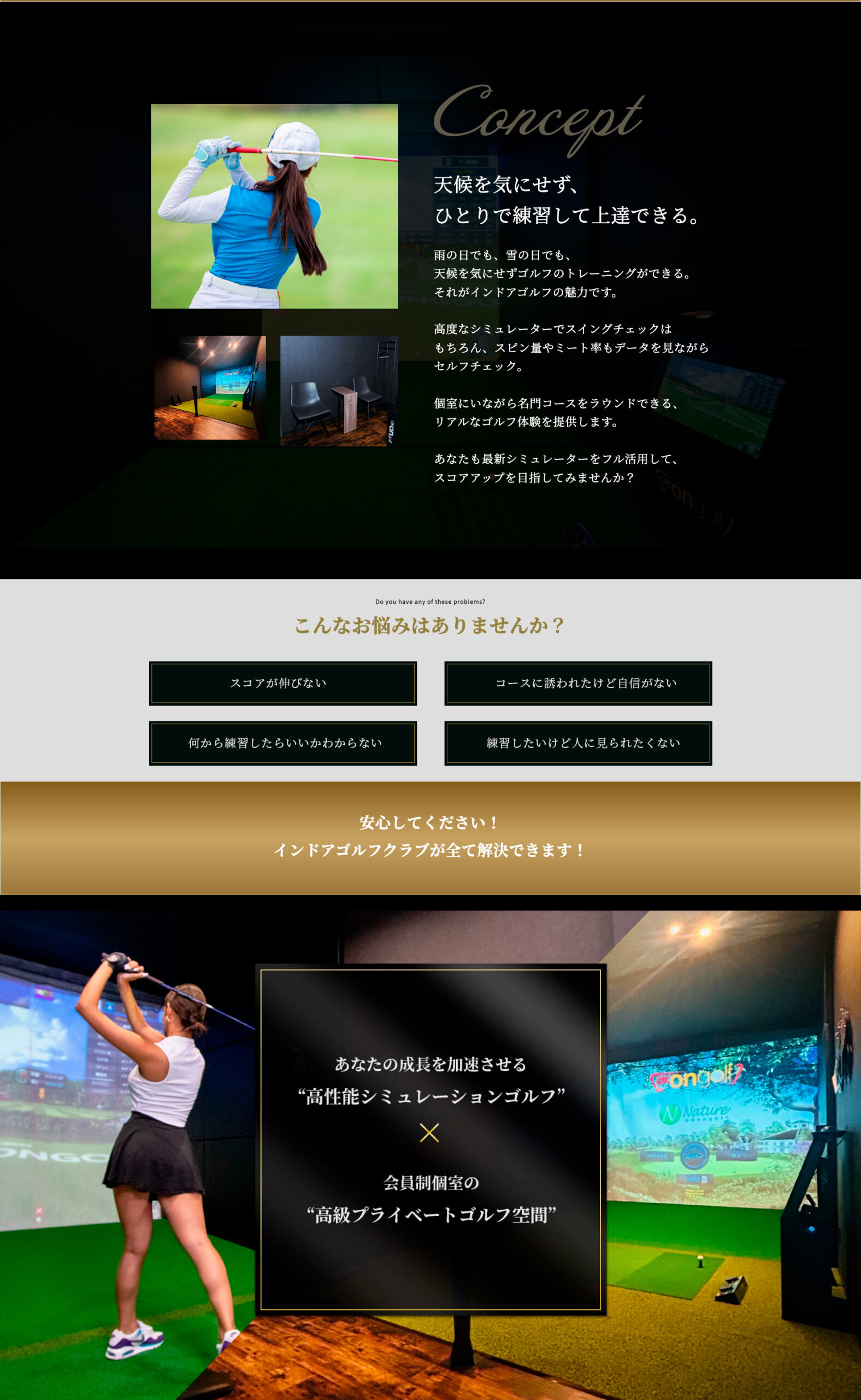 シミュレーションゴルフ施設の集客用LPデザインを制作させていただきました