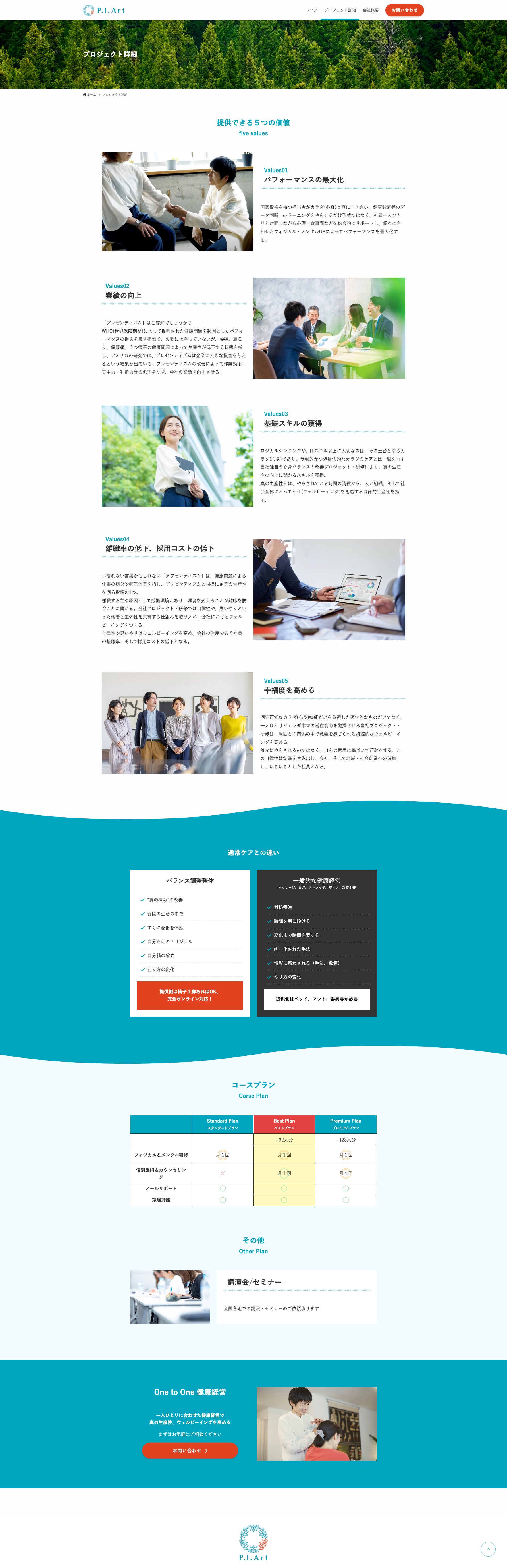 企業様をターゲットに健康経営サービスを提供する株式会社P .I .Art様のコーポレートサイトを制作させていただきました。
