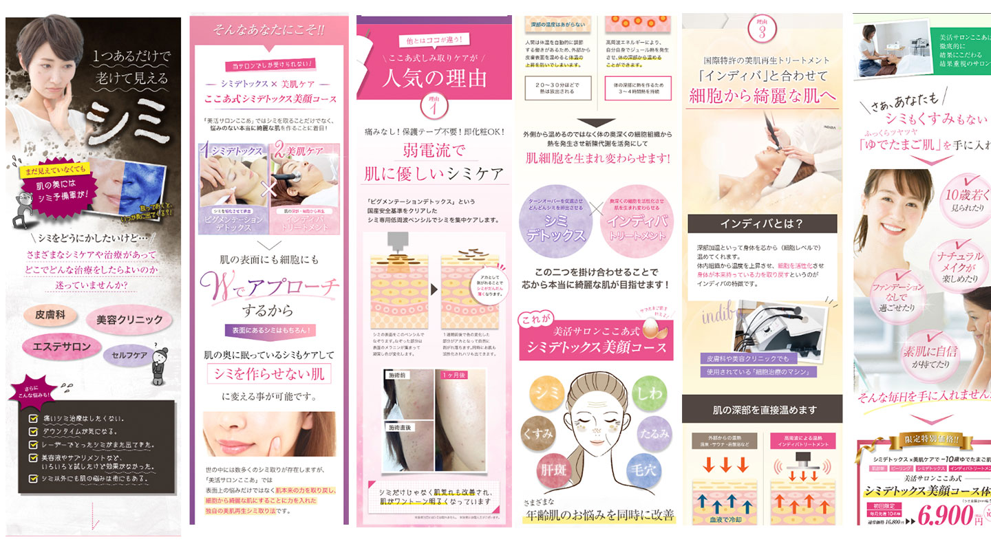 リスティング広告を使った、シミデトックス美顔コースの集客のためのLPを制作させていただきました。
